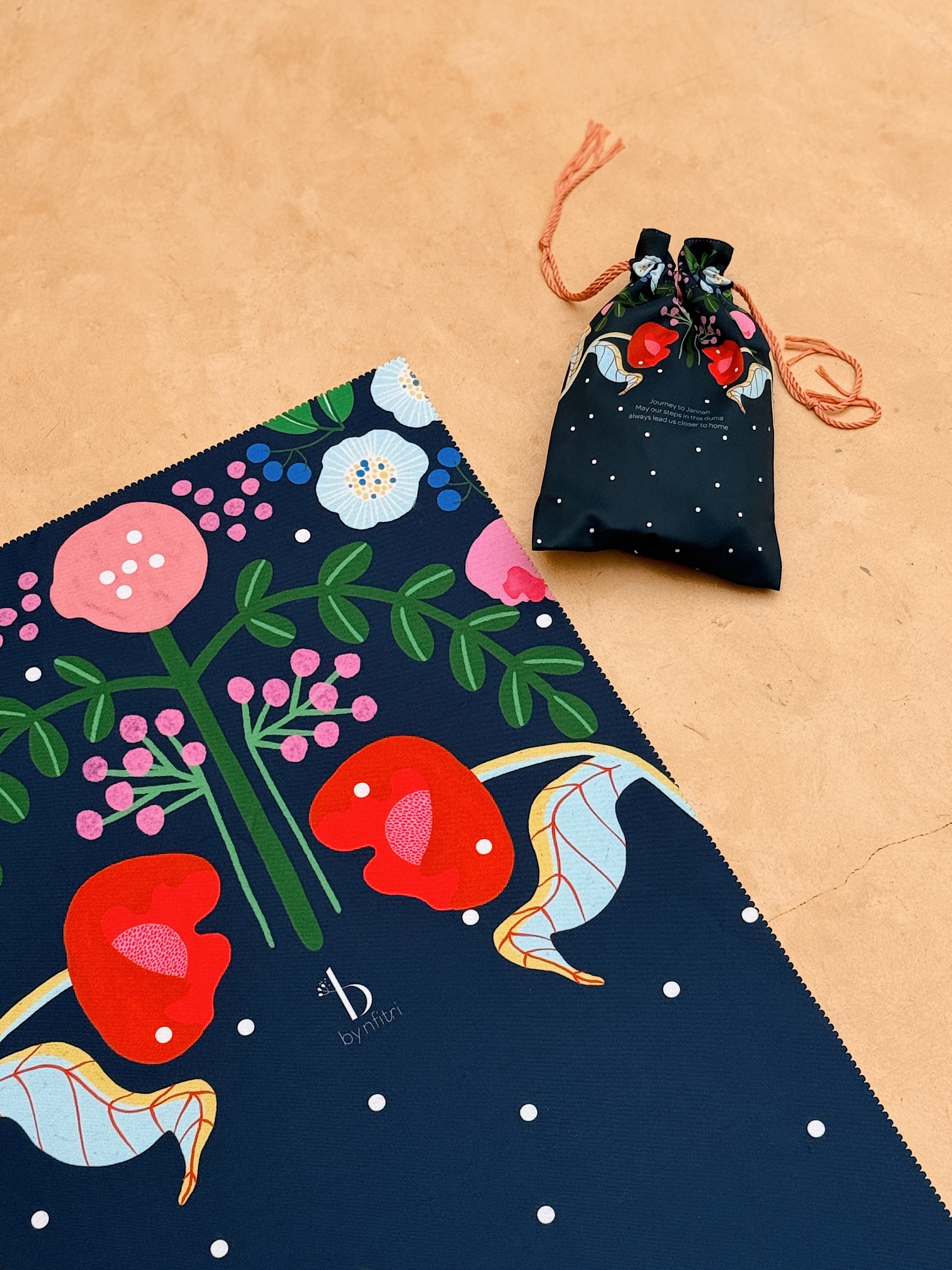 Suria in navy travel prayer mat